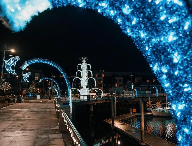 Holiday lights, artisan market, kids’ activities, and Santa’s arrival by boat.